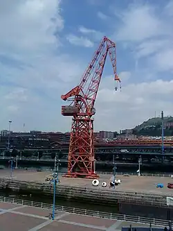 La Carola es una grúa cigüeña y fue construida entre los años 1954 y 1957 por la empresa Talleres de Erandio convirtiéndose en la máquina elevadora más potente de toda España.[47] Tenía capacidad para levantar 60 toneladas de peso y era utilizada para la construcción de grandes barcos. Funcionó hasta el año 1984 en que se cerraron los astilleros. La grúa quedó en desuso y fue objeto de algunos actos vandálicos hasta que la adquirió el ayuntamiento bilbaíno que la donó, junto al resto de las instalaciones de los astilleros (diques secos y caseta de bombas) a la Diputación Foral de Vizcaya para que formara parte del Itsasmuseum Bilbao.