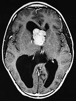 - ↑ Daniel Y. Suh et al., Pediatric supratentorial intraventricular tumors, en Neurosurg Focus 10 (6):Artículo 4, 2001.