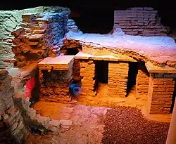 Ninguna de las viviendas halladas se ha podido excavar en su totalidad ni se ha podido identificar ninguna estructura relacionada con la actividad artesanal. Esto se debe a la problemática de obtener, de manera completa, la planta de los antiguos edificios: el parcelario de la ciudad moderna no guarda similitud con el de época romana.[58]