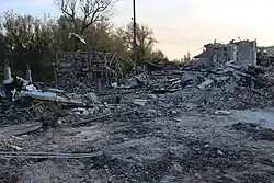 - ↑ Blann, Susie. «Russian airstrike on village store and cafe kills scores, Ukraine says». Anchorage Daily News (en inglés). Consultado el 6 de octubre de 2023.
