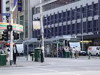 Según los testigos, el conductor pasó un semáforo en rojo y luego aceleró en un área con un límite de velocidad de 40 km por hora (25 millas por hora) donde arrolló a varios peatones.[3] Su auto chocó finalmente contra un poste junto a una parada de tranvía.[4] Un oficial fuera de servicio de la policía de Victoria logró reducir rápidamente al sospechoso.[5]
