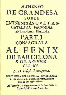 1. Feliu, Francesc. “Una lliçó d’història de la llengua literaria. El pròleg a l’Atheneo de Grandesa de Joseph Romaguera.” Estudi General 20 (2001), p.445.