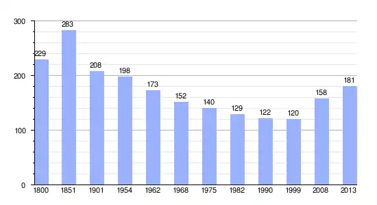 Los datos demográficos contemplados en este gráfico de la comuna de Athose[4] se han cogido de 1800 a 1999 de la página francesa EHESS/Cassini, y los demás datos de la página del INSEE.[5]
