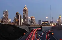![]() Panorama urbano de la ciudad visto desde Buckhead, el Capitolio del Estado de Georgia, el Centennial Olympic Park, el World of Coca-Cola, Downtown Atlanta y el Turner Field.