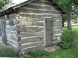 “A Link With the Past (Una cita de la placa enfrente de la cabina que significa en español: "un enlace con el pasado").La cabaña estuvo en la granja Gripple al noroeste de la ciudad de Atlantic cuando el Club de los Rotarios de la ciudad de Atlantic se interesó en su preservación y restauración como un proyecto por el bicentenario del club en el año de 1976. Los rotarios y los niños exploradores de la tropa 60 desmantelaron la cabaña y numeraron cada tronco para luego reconstruirla. La asociación femenina "Atlantic Soroptimists" se encargó de amueblar la cabaña tal como lo estuvo originalmente. El club de los rotarios de la ciudad de Atlantic, tenía la esperanza de que esta cabaña "representara la historia del condado de Cass y del estado de Iowa.”[5]