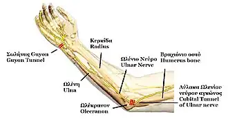 - ↑ «Disfunción del nervio cubital». MedLinePlus. Consultado el 3 de abril de 2019.