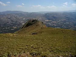 Las excavaciones llevadas a cabo indican que aquí se hallaba un santuario de montaña del periodo minoico. El punto central del santuario presenta la característica de tener una gran concentración de guijarros. No hay restos arquitectónicos pero sí se encontraron miles de fragmentos de figurillas de arcilla y de cerámica. Entre las ofrendas predominan figurillas de ganado y otros objetos que parecen representar falos. También hay figurillas antropomorfas, tanto masculinas como femeninas. Entre la cerámica se han encontrado ritones —algunos con forma de cabeza de toro—, pithoi, tazas, lámparas y recipientes en forma de trípode. Otros hallazgos incluyen un sello de arcilla y una hoja de obsidiana. A diferencia de otros santuarios minoicos, aquí no se han encontrado indicios de fuego ni de sacrificios de animales.[2][3]