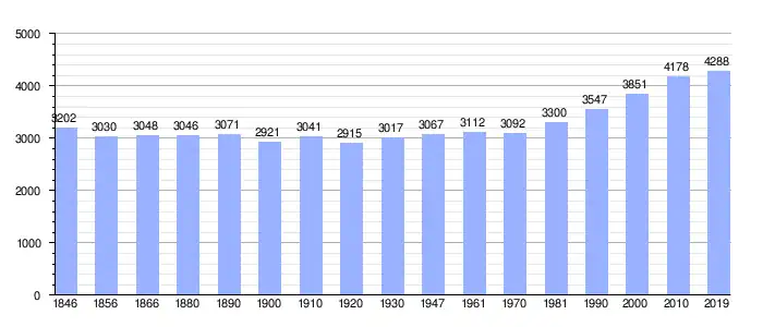 | Gráfica de evolución demográfica de Aubel entre 1846 y 2019 |