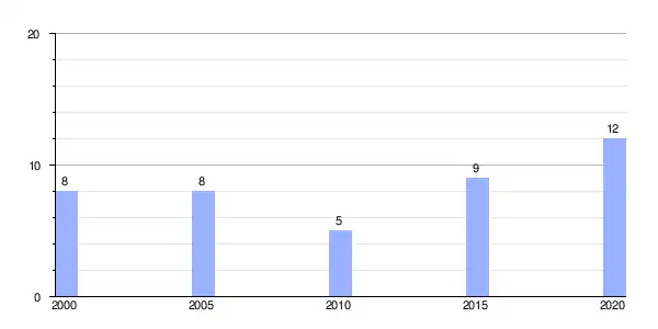 | Gráfica de evolución demográfica de Augasantas entre 2000 y 2020 |
