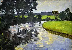 - August Haake demuestra ser un excelente retratista en sus pinturas y dibujos, pero su verdadero talento y su enfoque artístico están en el paisaje. Así es como él se ve a sí mismo, como lo enfatiza repetidamente en sus cartas. Siempre se inspira en 'su' paisaje del norte de Alemania, y se siente feliz en las 'colonias de artistas' como Worpswede y Fischerhude. Como es bien sabido, ambos lugares representan las numerosas colonias de pintores en el país y en el extranjero que se inspiraron en Barbizon. En el proceso, August Haake desarrolló un estilo de pintura expresivo que no coincidía inmediatamente con su falta de confianza en sí mismo. Pero son precisamente las limitaciones que experimenta una y otra vez debido a su problema de lenguaje, su tartamudez, las que posiblemente lo lleven a su propia pincelada impetuosa en los años 1910/11. Para él, el discapacitado del habla, el arte se convierte en un medio intenso de expresión de su personalidad; ahí radica el paralelo con su amigo y colega Rudolf Franz Hartogh de la misma edad. Aunque a August Haake no se le permitió seguir impulsando su desarrollo artístico, nos dejó una obra rica y madura, teniendo en cuenta el poco tiempo que tuvo para crearla." [10]