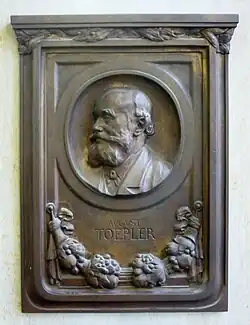 - Esta obra contiene una traducción derivada de «August Toepler» de Wikipedia en inglés, publicada por sus editores bajo la Licencia de documentación libre de GNU y la Licencia Creative Commons Atribución-CompartirIgual 4.0 Internacional.
