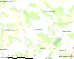 Auradou es una población y comuna francesa, en la región de Aquitania, departamento de Lot y Garona, en el distrito de Villeneuve-sur-Lot y cantón de Penne-d'Agenais.