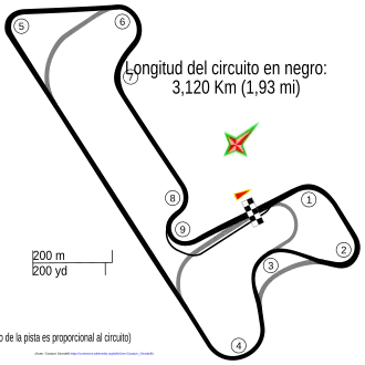 | Longitud | 3.120 circuito número 1 (3150) variante *1 (3.169) variante *2 (3.340) variante *3 y 3.015 circuito principal km | |