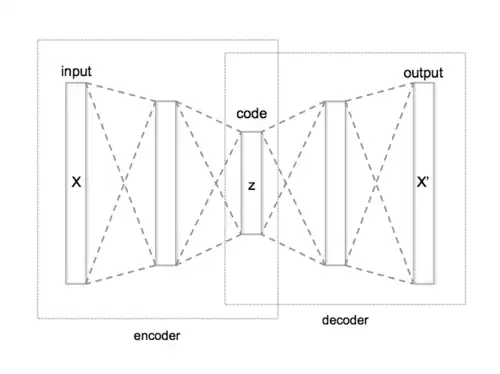 Un autocodificador es un tipo de red neuronal artificial utilizada para aprender codificaciones eficientes de datos no etiquetados (aprendizaje no supervisado).[1][2] El autocodificador aprende dos funciones, la primera es aquella que transforma los datos de entrada y la segunda es la función de decodificación que recrea los datos de entrada a partir de la representación codificada. El autocodificador aprende una representación eficiente (codificación) para un conjunto de datos, normalmente para reducir la dimensionalidad.