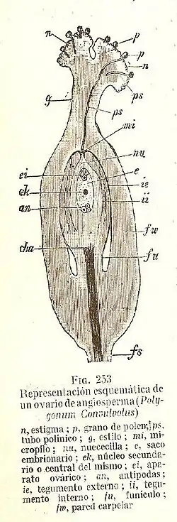 - ↑ Boavida LC, Vieira AM, Becker JD, Feijó JA. (2005). «Gametophyte interaction and sexual reproduction: how plants make a zygote». Int. J. Dev. Biol. 49: 615-632. doi: 10.1387/ijdb.052023lb.