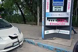 Para febrero de 2013, había cerca de 70 Leaf en el país, empleados como taxis, 50 en Aguascalientes y 20 en Ciudad de México.[57] El programa de Aguascalientes se inició en mayo de 2012, y su aplicación incluye el despliegue de un garaje con 58 puntos de recarga, el mayor de su tipo en el mundo.[58] Carrot México, una empresa que opera carsharing en la Ciudad de México, adquirió 3 Leaf que están disponibles para sus 1.600 clientes.[59] Para octubre de 2012, no había incentivos fiscales del gobierno disponibles para bajar el precio de compra de los coches eléctricos, ni las tarifas eléctricas preferenciales para los propietarios de automóviles eléctricos. Sin embargo, los coches eléctricos están exentos del régimen de restricción de conducción implementado por número de placa para restringir el acceso a la Ciudad de México para mejorar la calidad del aire.[58]