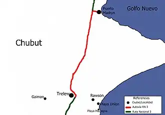 En la época de verano esta autovía funciona como un perfecto conector hacia las playas de la Comarca Valdés.[7]​ La obra incluyó la relocalización de la rotonda de acceso a Puerto Madryn, que en su ubicación anterior no podía ser iluminada por su cercanía a la cabecera del Aeropuerto El Tehuelche y presentaba un radio de giro insuficiente como consecuencia de su escaso tamaño. Con la nueva rotonda, se buscó mejorar considerablemente la circulación.