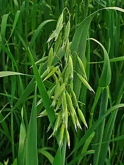 La avena (Avena sativa) es una especie de planta fanerógama de la familia Poaceae. Es una especie de grano de cereal que se cultiva por su semilla, que se conoce con el mismo nombre (generalmente en plural, a diferencia de otros cereales y pseudocereales). Si bien la avena es apta para el consumo humano como avena y copos de avena, uno de los usos más comunes es como alimento para el ganado.