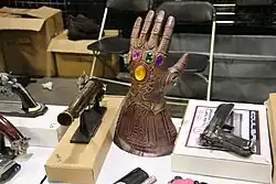 - ↑ Kerr, Mandy (21 de noviembre de 2021). «'Avengers: Endgame' Director Joe Russo Explains How Thanos Broke Captain America's Shield». Showbiz Cheat Sheet. Archivado desde el original el 14 de abril de 2021. Consultado el 8 de mayo de 2021.