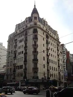 La esquina con la calle Esmeralda es dominada por uno de los edificios más llamativos de Buenos Aires, un gran inmueble de departamentos de 13 pisos de altura, construido hacia 1927 por la empresa de Bencich Hermanos, según el proyecto del francés Eduardo Le Monnier. Posee varias cúpulas y una mansarda rojiza. En Córdoba 936 funciona la Alianza Francesa de Buenos Aires.