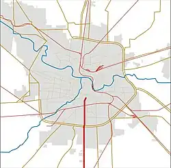 Ya que se ubica dentro del polo universitario, y funciona como acceso a ella, en sus primeros metros de recorrido pasan diversas líneas de colectivos (marcados con *):