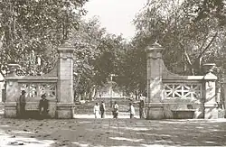 A inicios del siglo XX, como acceso principal al paseo en su sector oriente, se construyó una portada de mármol —elaborada por el escultor Carmelo Faggione— que fue entregada a la ciudad a fines de 1911, con posterioridad la celebración del centenario de la República.[2] En esa misma época se traslada a la avenida la primera fuente de agua con que contó la plaza de Armas, que estuvo ubicada primeramente cerca de la actual ruta 5 Panamericana Arica-La Serena y después en calle Balmaceda. De estos dos monumentos iniciales del paseo que se instalaron a inicios del siglo XX, solo se conserva el portal de mármol frente a la avenida Balmaceda.[cita requerida]