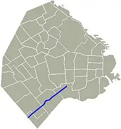| Avenidas que corta | La Plata, Centenera, Perito Moreno, Varela, San Pedrito, Lafuente, Mariano Acosta, Lacarra, Escalada, Larrazábal, de la Torre y General Paz | |