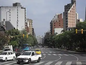 ![]() Vista de la Av. Yrigoyen desde el Patio Olmos. | ||