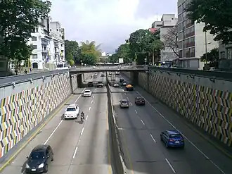 Según la arquitecta María Boccalandro, el diseño de dos niveles de la avenida Libertador responde a la intención de que el corredor cumpliera dos funciones: el subterráneo o, zona deprimida, como vía expresa que sirviera de conexión rápida entre los extremos –este y oeste– de la ciudad; y el nivel de la superficie para que cumpliera el carácter urbano de la vía. Allí se alojarían los servicios propios de una urbe, y tanto conductores como peatones pudieran tener acceso a las parcelas que se establecieron alrededor de esa arteria.[1]