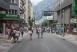 Contiene edificios emblemáticos como la iglesia de San Pedro Mártir, el Hotel Carlemany (núm. 4), el Hotel Valira (núm. 37), la Casa Lacruz (núm. 61) o la Casa Duró (núm. 91).
