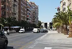 Avenida de la Estación en julio de 2013. Al fondo, la estación de Alicante-Terminal. | ||