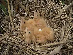 Esta especie es monógama y territorial. Los machos establecen un territorio al comienzo de la temporada de reproducción, y lo defienden de los demás machos. Generalmente anidan en solitario pero a veces pueden juntarse en colonias en hábitats favorables con una distancia entre nidos de hasta 5 m. Su nido es un pequeño cúmulo de tallos de juncos y carrizos escondido entre los cañaverales, cerca de la superficie del agua o hasta 60 cm por encima de ella. A veces, colocan el nido en arbustos o árboles bajos hasta 2 m por encima del agua. Suelen poner de 2 a 7 huevos, en una única nidada, de mayo a julio,[9] y se incubarán entre 17-19 días. Los dos miembros de la pareja cuidan y alimentan a los polluelos hasta que abandonan el nido en torno a los 30 días del nacimiento. El será reutilizado en años consecutivos si se encuentra en buenas condiciones.