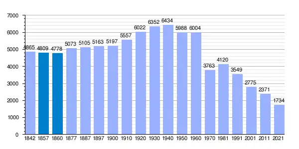 Gráfica de evolución demográfica de Avión[1]​ entre 1842 y 2021