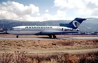![]() Boeing 727-100 (OB-1731) de Aviandina en el Aeropuerto Internacional Alejandro Velasco Astete de Cuzco (año 2000) | |||||