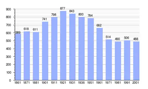 | Gráfica de evolución demográfica de Aviatico entre 1861 y 2001 |