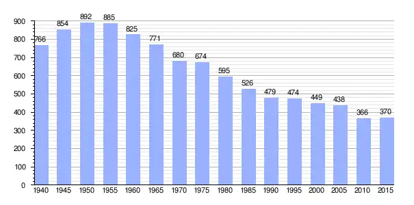 Gráfica de evolución demográfica de Awashimaura entre 1940 y 2015