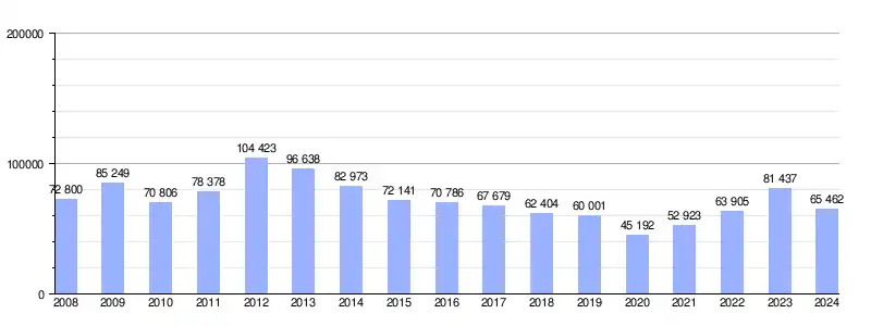 | Gráfica de evolución de la deuda viva del Ayuntamiento entre 2008 y 2024 |