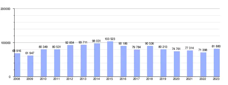 Deuda viva del Ayuntamiento de Almería, en miles de euros, según datos del Ministerio de Hacienda[7]