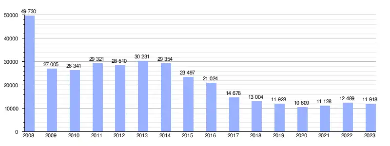 | Gráfica de evolución de la deuda viva del Ayuntamiento entre 2008 y 2023 |