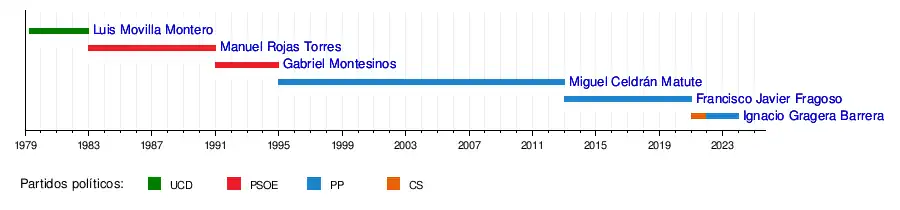 Entre los alcaldes, han pasado a la historia especialmente Carlos Witte y Pau, José María Lópezy Rastrollo, Fernando Calzadilla Maestre, Antonio Masa Campos, Manuel Rojas Torres y Miguel Ángel Celdrán Matute.