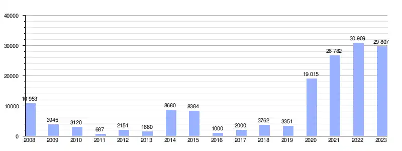 | Gráfica de evolución de la deuda viva del Ayuntamiento entre 2008 y 2023 |