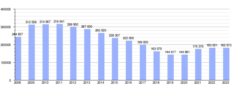 | Gráfica de evolución de la deuda viva del Ayuntamiento entre 2008 y 2023 |