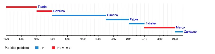 | 1979-1983 | PSPV-PSOE+EIC+PCPV+CD[7] | 17/27 |