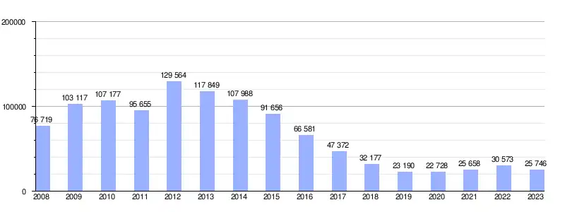 | Gráfica de evolución de la deuda viva del Ayuntamiento entre 2008 y 2023 |