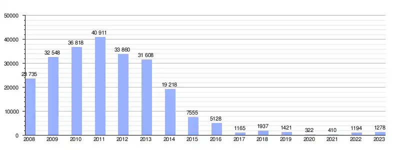 | Gráfica de evolución de la deuda viva del Ayuntamiento entre 2008 y 2023 |