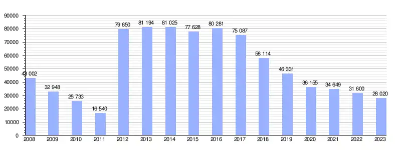 | Gráfica de evolución de la deuda viva del Ayuntamiento entre 2008 y 2023 |