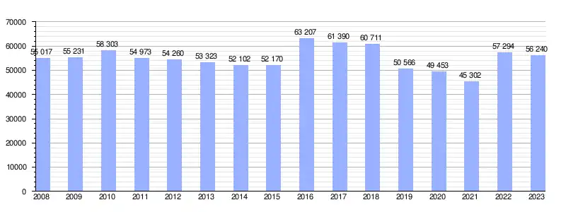 Gráfica de evolución de la deuda viva del Ayuntamiento entre 2008 y 2023