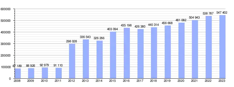 | Gráfica de evolución de la deuda viva del Ayuntamiento entre 2008 y 2023 |