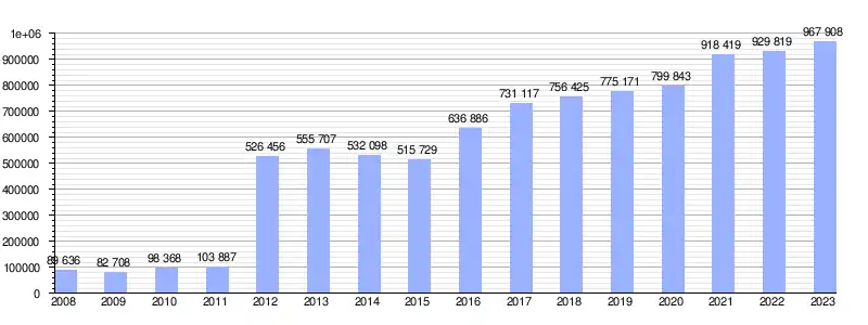 | Gráfica de evolución de la deuda viva del Ayuntamiento entre 2008 y 2023 |