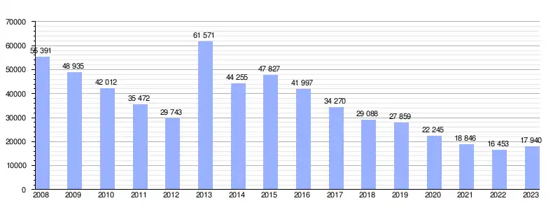 | Gráfica de evolución de la deuda viva del Ayuntamiento entre 2008 y 2023 |